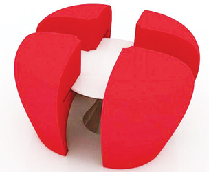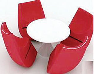 其實(shí),這只不過是一套創(chuàng)意獨(dú)特的緊湊型休閑椅而已。在每把椅子上都設(shè)計(jì)了一個凹槽,它可以將桌子插到椅子中,而且每把椅子也都被設(shè)計(jì)成了直角,如果在不用時只要將它們巧妙地組合在一起,就可以很好地將桌子包裹起來,就如一只碩大的花苞,不了解實(shí)情的人是絲毫看不出’廬山真面目’的。 裝飾裝修