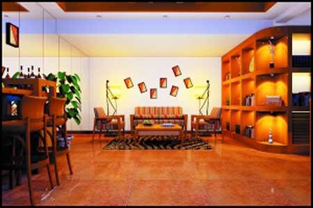 客廳與休閑室之間的墻中間被掏了一個(gè)方形洞,洞四周用木框包邊,做成窗戶(hù)的樣子。而客廳的電視機(jī)就放在窗戶(hù)上,給人的感覺(jué)是一面電視墻。在這個(gè)大窗框后面就是休閑室的墻,建議墻上用大幅山水畫(huà)或油畫(huà),在室內(nèi)營(yíng)造一幅藝術(shù)美景。裝飾裝修