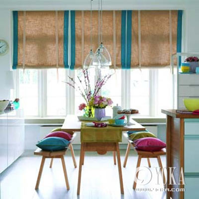 4.亞麻質(zhì)地、卷軸式的百葉窗,使餐廳隨時(shí)保持良好的采光。
