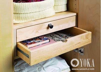 對柔軟臃腫的針織衣物,由于很占空間,應(yīng)該引起我們的注意。帶有很多抽屜的地柜,一方面可以收納這類衣物,同時(shí)也能用來陳設(shè)擺件或做凳子。