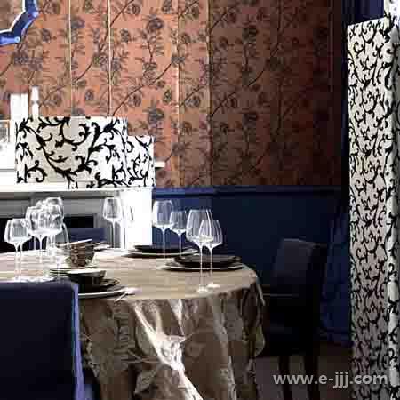 這間搶眼的臥室,采用了時尚的瑞士絨面墻紙設計,配上精心設計的鼓形燈罩和綢緞桌布,讓人胃口大開。用這樣醒目的色彩創(chuàng)造一個屬于自己的個性餐廳,比如壁紙下方和椅子都用了深藍色,這樣就更好的襯托出花紋設計。