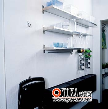 概要: 亮點1:見縫插針的隔板(餐廚)見縫插針的隔板 由于空間上的限制,在滿足基本的使用功能后,小廚房的儲物空間往往會顯得比較緊張,因而需要最大限度地挖掘可利用空間,擴大空間感,盡量避免死角。抽油煙機上方的空間很容易被遺忘,但因地制宜地增添可儲物的隔板后,也能解決小廚房的收納問題?! ≌莆招粜涂臻g利用的五大訣竅: 1。