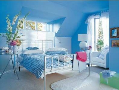 藍(lán)色主臥室,讓最平淡的日子也香艷起來(lái),香艷這個(gè)詞,在古時(shí)候也是用來(lái)形容女子閨房的。不過(guò),顯然,現(xiàn)代的香艷才是更符合它的字面意義的。所謂艷,即明艷。強(qiáng)調(diào)的是色彩,并且是濃烈而明亮的色彩,愛(ài)琴海一般的冰藍(lán)、山茶花一樣的純紅、檸檬原色的明黃,以及泛著光彩的亮白,只有春天的水果和鮮花的顏色才有資格被一一臨摹。而香,則和那一抹存在于四周卻不得描摹形狀的溫馨氣味一樣,不是一盞冰藍(lán)的水晶燈,或者一套淡綠的茶具、一雙亮紅的塑膠拖鞋,而是這些所有細(xì)枝末節(jié)的總和。沒(méi)有實(shí)體,而只能借助一切精致的道具,從骨髓往外滲透的這種情調(diào),一定要給它一個(gè)稱(chēng)謂的話(huà),姑且我們可以叫它小資。