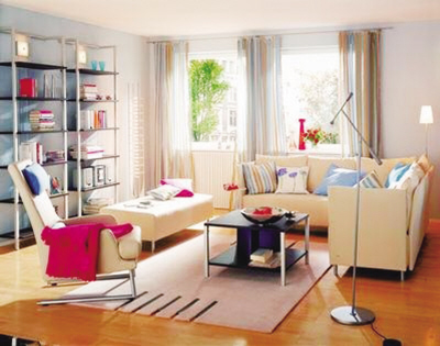 三、客廳或門廳兼餐廳用。在這種格局下,餐區(qū)的位置以鄰接廚房并靠近客廳最為適當,它可以縮短膳食供應(yīng)和就座進餐的走動線路,同時也可避免菜湯、食物弄臟地板。餐廳與客廳之間可采用靈活處理,如用壁式家具作閉合式分隔,用屏風、花格作半開放式的分隔,用矮樹或綠色植物作象征性的分隔。這種格局下的餐廳應(yīng)注意要與主要空間即客廳在格調(diào)上保持協(xié)調(diào)統(tǒng)一,并且不妨礙通行。