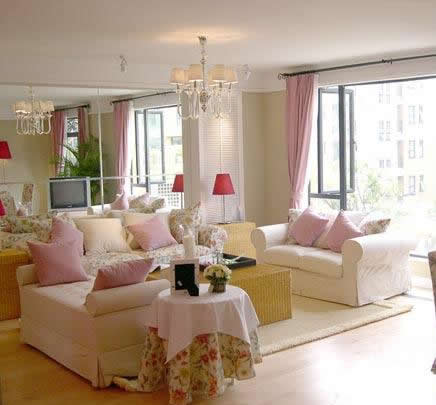 床罩等則采用較明快的粉紅藍色,使整個房間在寧靜的氣氛中表現(xiàn)出輕快的活力。