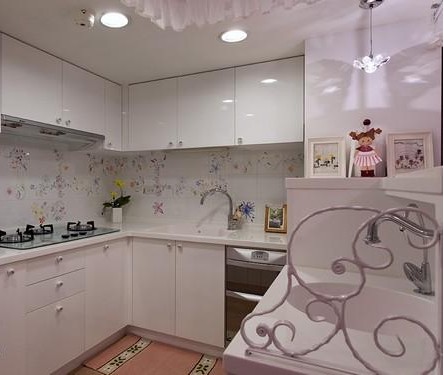 廚房。廚房一角的小裝飾,可愛水晶吊燈。都為廚房增加了一點(diǎn)小女生的情懷。