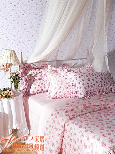 紫色玫瑰少了一絲嬌柔,多了一分精致,寬大的荷葉花邊,以及30支精紡平紋高質(zhì)棉的質(zhì)地,吸濕透氣,柔軟舒適,搭配紫色玫瑰花圖案墻紙、白色細(xì)紗幔帳、白色鐵藝床,共同營(yíng)造出臥室精秀雅致的風(fēng)情。上海裝潢網(wǎng)