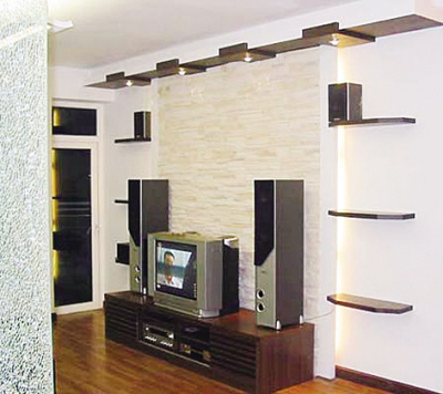 “我的電視背景墻是由壁紙和裝飾板組成的,正中間放液晶電視的部分是由波浪形裝飾板做成的。當(dāng)時我那朋友將手伸進(jìn)裝飾板預(yù)留的一個洞里,上下摸了摸,然后告訴我這個背景墻可能不行,要重新做。他的理由是里面沒有放大芯板,僅靠裝飾板根本不能承受什么重量,到時候電視掛不上。”蔡先生說。