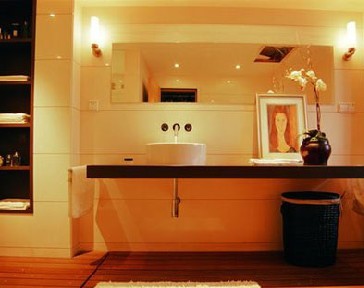 如果浴室里安裝的是掛墻式臺(tái)盆,那么臺(tái)盆上下方空間都有了可利用的余地,在下面安置可以收放物品的浴室柜是最常見的方法,上方則可以安置鏡柜。