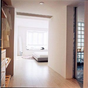 在床頭一邊或兩邊,距墻約二十到四十公分的位置,豎一塊高大的板材,內(nèi)藏床頭燈,造成一個(gè)虛幻的空間,使床頭部分更加富有擴(kuò)張、神秘的魅力。