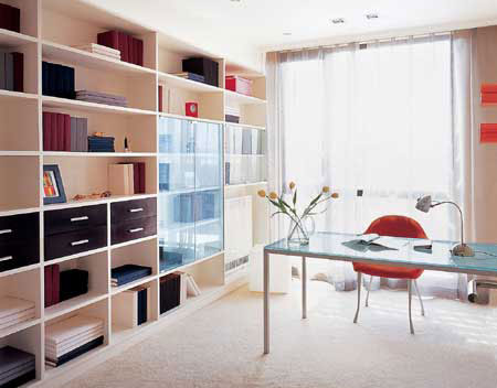 在設(shè)計新概念書房時,首先對你的藏書來個大整理?;逎D深的研究類,輕松消閑的娛樂類,技術(shù)應(yīng)用類,感人肺腑的小說類,將所有書籍分門別類整理好,使之井然有序,方便參閱。上海裝潢網(wǎng)