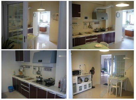 其二,接近正方形??刹捎肔形布置,這種方法能有效利用墻面,操作省力方便,可布置尺寸較長(zhǎng)、數(shù)量較多的家具和用具。洗池在廚房的一側(cè),爐灶偏里靠側(cè)墻,池灶之間以案桌相連。這樣的廚房布置,順序明確,洗———切———燒互不相擾。面積雖小,卻得體有序。