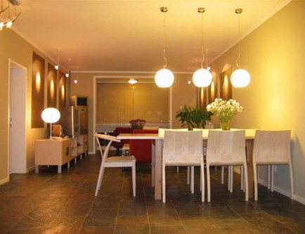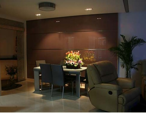 燈光在餐廳的設(shè)中計(jì)占據(jù)極重要的一環(huán),在造型上以垂釣式的吊燈為主,輔以射燈或筒燈等,營(yíng)造一方層次分明的“光彩”空間。日光燈在照明上雖然充分,但慘白青灰的色澤,不禁使人顏面失常也會(huì)引起對(duì)冷調(diào)環(huán)境的倦怠感,所以日光燈是餐廳不宜使用的燈光。