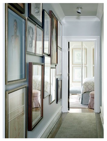 其次,可以把展示功能組合到過道中。很多人家都有些藝術(shù)品,但未必非要放到廳里炫耀,比方說油畫、照片,