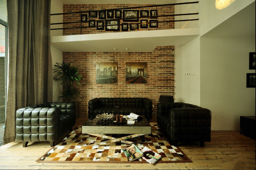 皮質(zhì)的個(gè)性家具,復(fù)古的背景墻,這一切飾品皆由這個(gè)屋子的主人親自挑選。