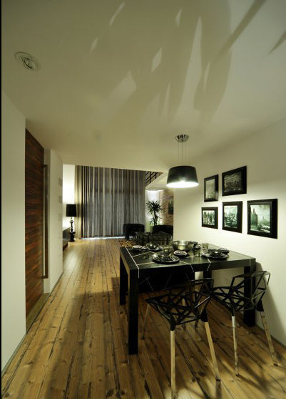 過度利用的非常充分,餐廳的桌椅及裝飾畫,都以統(tǒng)一色調(diào)形成