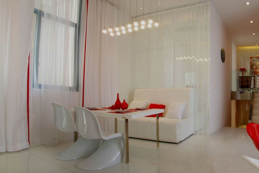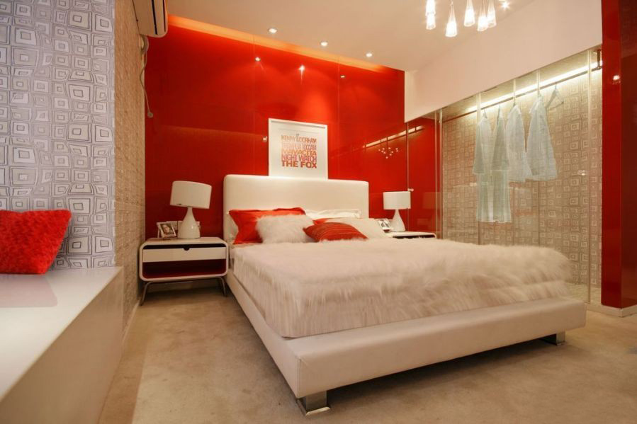 主臥呢,旁邊是飄窗。在紅白的轉(zhuǎn)換與交叉中游走。