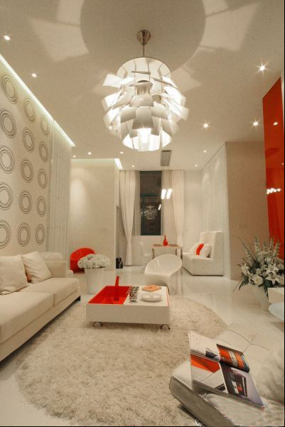 電視背景墻格外搶鏡,紅色、白色和黑色的運(yùn)用頗有些70年代的感覺(jué)。讓整個(gè)家的喜慶成份也直線上升,長(zhǎng)期居住也不會(huì)顯得過(guò)時(shí)。