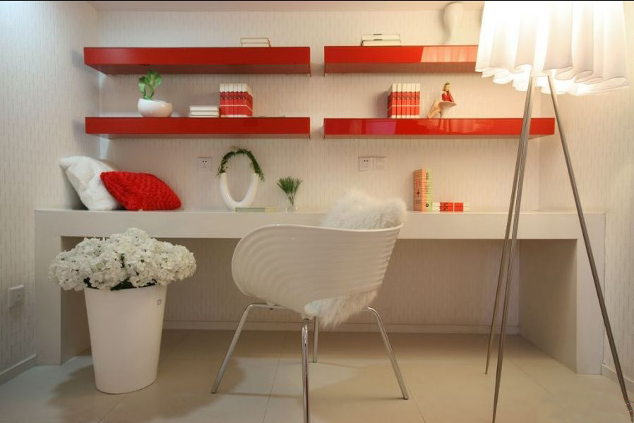 這個(gè)造型獨(dú)特的椅子,是不是覺(jué)得很眼熟,這款椅子,餐廳中也有用到過(guò),是白色的,這里放了一款紅色的,這款家具是業(yè)主MM在淘寶上淘到的,價(jià)格相當(dāng)?shù)膬?yōu)惠。