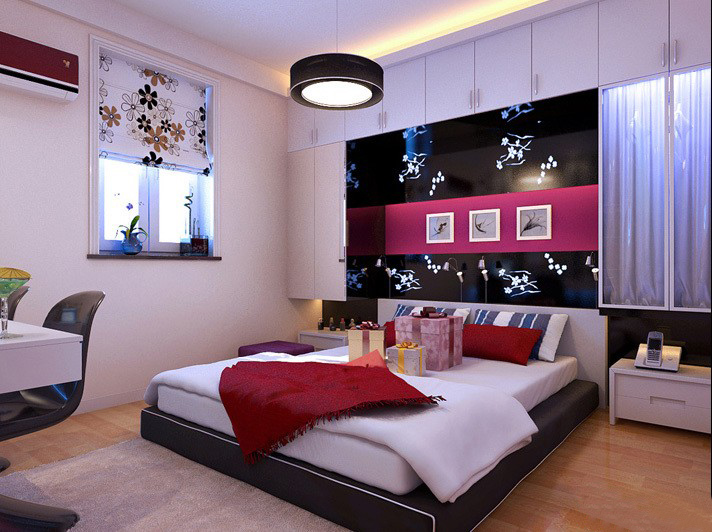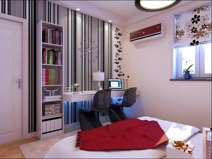 臥室是整個(gè)房子里最大空間的一個(gè)房間里,它的功能除了睡眠外,還附加書房的功能,設(shè)計(jì)合理,有條不紊,空間錯(cuò)落有致。