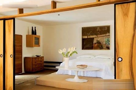 這是一間極具意大利風情的小屋,其屋主和設計師是一來自英國,名為MichaelPlayford的20世紀古董家具收藏家。因為他有收藏非洲和日本古董的興趣,其家居都滲入了絲絲的日式室內設計風格??蛷d安裝了日式的兩開木趟門,能分隔開生活間和睡房的空間,趟門關上的時候讓室內帶有一種日式的典雅、莊嚴和寧靜;一打開門,就能展現(xiàn)出睡房那寬闊的空間,和屋主的珍藏品,既能用來招呼賓客,更是一個簡單的古董家具展廳。