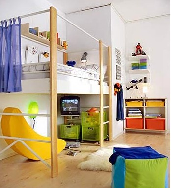 關(guān)于布藝。孩子會像大人一樣對某些顏色情有獨(dú)鐘。你可以選擇顏色素淡或簡單的條紋或方格圖案的布料來做床罩,然后用色彩斑斕的長枕、墊子、玩具或毯子去搭配裝飾“素淡”的床、椅子和地面。其中長枕、墊子等的外套可以備有多種顏色,可以在不同季節(jié)、孩子不同年齡時更換枕套和墊子的顏色,這樣的做法比較經(jīng)濟(jì)、實(shí)用。窗簾的顏色可以選擇淺色或帶有一些卡通圖案的面料,材質(zhì)不宜過厚。因?yàn)樵诖?、夏兩季,白天陽光很?qiáng)的時候拉上窗簾,孩子仍然可以在光線柔和的房間里玩耍。