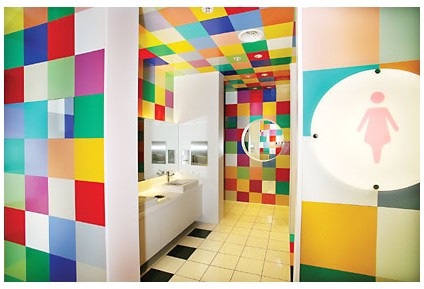 墻面鋪裝:采用45度斜鋪與垂直鋪裝結(jié)合,這使墻面由原來較為單調(diào)的幾何線條變得豐富和有變化,增強了空間的立體感和活躍氣氛。