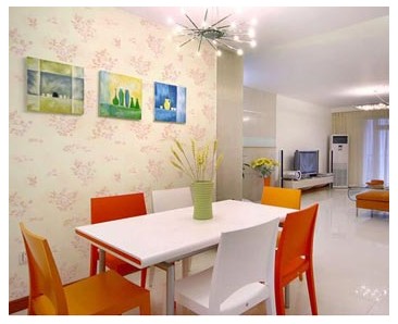 餐桌、餐椅、酒柜當(dāng)然是必不可少的家具了。餐桌、餐椅的大小應(yīng)該與餐廳的總體環(huán)境相適應(yīng),大則可以寬敞氣派,小則可以玲瓏精致。擺放的位置要選擇較長的圍合的墻邊,使人可以氣定神閑地就餐,留出一個約800mm的通往廚房的過道,便于廚房與餐廳之間的傳菜等交流。而酒柜則可以視其具體情況布置,通常較小的空間,可以考慮角式酒柜,既可以節(jié)省空間,又保證了使用功能。酒柜實(shí)際上具備多種功能,備餐、儲存、展示、裝飾、隔斷等等。