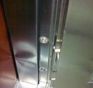 1. 看門框的平整度!以圖為例,由于門框的鋼質(zhì)不夠硬,導致變形。既然是鋼門,但是居然變形了,不用多說,大家也知道好不好了。
