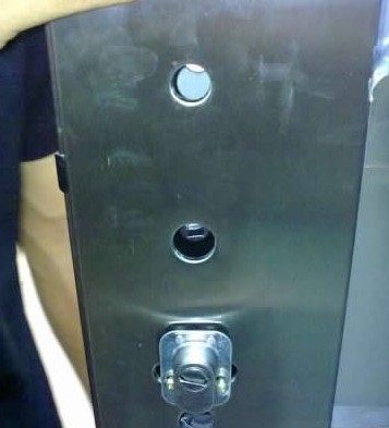 第2張圖,門鎖的部分里面沒有木頭承托,鋼自己就能穩(wěn)穩(wěn)當當?shù)恼局绷恕Y|(zhì)量好,加分。