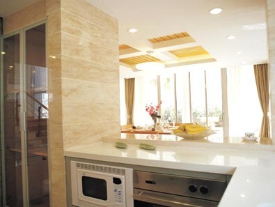 在各種廚房中,一字形廚房要把所有的工作區(qū)都安排在一面墻上,通常在空間不大、走廊狹窄情況下采用。工作臺(tái)不宜太長,最好安排一塊能伸縮調(diào)整或可折疊的面板,以備不時(shí)之需。L形廚房要將清洗、配膳與烹調(diào)三大工作中心依次配置于相互連接的L形墻壁空間。U形廚房在工作區(qū)共有兩處轉(zhuǎn)角,水槽最好放在U形底部,并將配膳區(qū)和烹飪區(qū)分設(shè)兩旁,使水槽、冰箱和炊具連成一個(gè)正三角形。走廊型的廚房要將工作區(qū)安排在兩邊平行線上。如有足夠空間,餐桌可安排在房間尾部。需要提醒您的一點(diǎn)是:不論什么格局的廚房,清洗中心的水槽以及各個(gè)操作臺(tái)面的最佳寬度為80厘米。同時(shí)廚房的洗滌池不應(yīng)太靠近轉(zhuǎn)角布置,一般在廚房洗滌池的一側(cè)保留最小的案臺(tái)空間為45厘米,而另一側(cè)保留的最小案臺(tái)空間為61厘米。
