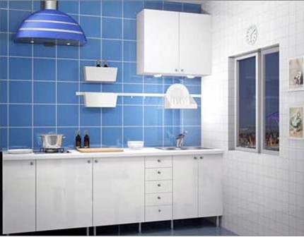 小廚房裝修的使用面積有限,在整體色彩安排方面,切忌花花綠綠。特別注意不能使用印有立體感圖案或明暗對比強烈的裝飾材料,否則不僅會使廚房面積在視覺上顯得狹小,而且不易清潔。