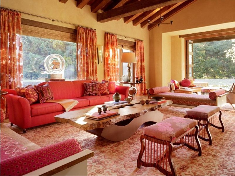 客廳整體呈現(xiàn)對稱的造型,但在細節(jié)處體現(xiàn)著不對稱的美感。濃烈的色彩,張揚情緒,濃烈而溫暖。