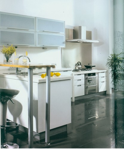 3.在吊柜上大量采用鋁框門和上翻門。原因是鋁框門利潤大,上翻門需配壓杠,要知道,一個壓杠的東西雖小利潤驚人,有的達(dá)到300%以上。用鋁框門和上翻門要適可而止,一般不超過吊柜總數(shù)的三分之一,這種門實(shí)用性差。