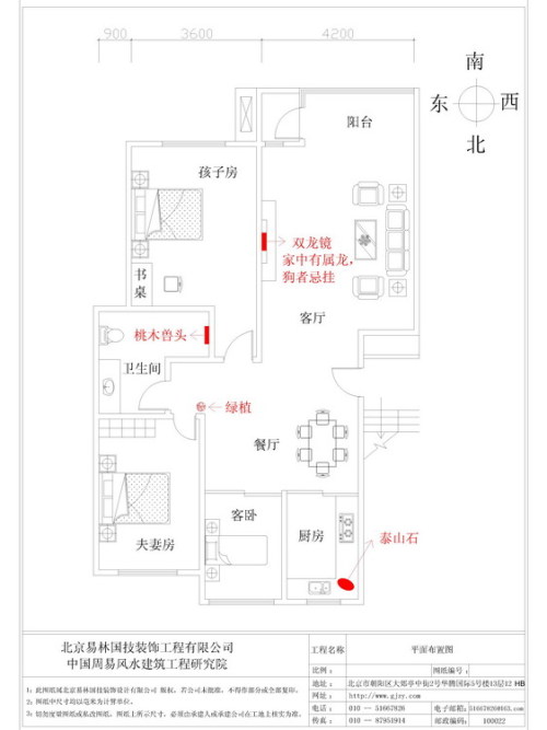 調(diào)整建議:東北方為合星位置,不但有益身心健康,而且亦有利于家人財(cái)運(yùn)事業(yè)的發(fā)展,因此,建議夫妻在此居住,居住在此同時(shí)有利于夫妻感情的融合發(fā)展,為延年長久之意;東南方為文昌星的位置,此方位有利于智利的開發(fā),因此,做為書房或讓孩子在此居住最為有利。正北小房可以設(shè)為客房或讓保姆居住??蛷d位置為官星,家人多在此處活動,有利于家人團(tuán)結(jié)及事業(yè)、仕途的發(fā)展,在此建議在客廳的東墻擺掛桃木小雙鏡,以緩解屋大人少所帶的空虛感,同時(shí),此吉祥物可助財(cái)助官。廚房處于財(cái)位,但有缺,可用泰山石來填實(shí)助吉,此處設(shè)為廚房,十分有利于家人財(cái)運(yùn)健康的發(fā)展。
