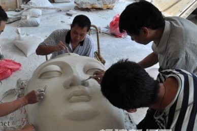 概要: “渡海觀音”矗立瓷都廣場。(王雙季攝)制作人員正在進行工藝最復(fù)雜的瓷雕“渡海觀音”頭部制作。(王雙季攝)二十九日,記者在“中國瓷都”福建德化的瓷都廣場,見識了最新亮相的世界最大露天瓷雕、德化首座城雕“渡海觀音”:高六點二米,重六噸,以德化明代瓷圣何朝宗大師的作品為范本,由國家級工藝美術(shù)大師蘇清河領(lǐng)銜打造,歷經(jīng)兩年始竣工。