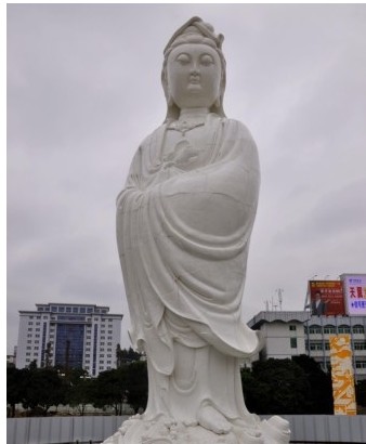 二十九日,記者在“中國瓷都”福建德化的瓷都廣場,見識了最新亮相的世界最大露天瓷雕、德化首座城雕“渡海觀音”:高六點二米,重六噸,以德化明代瓷圣何朝宗大師的作品為范本,由國家級工藝美術(shù)大師蘇清河領(lǐng)銜打造,歷經(jīng)兩年始竣工。