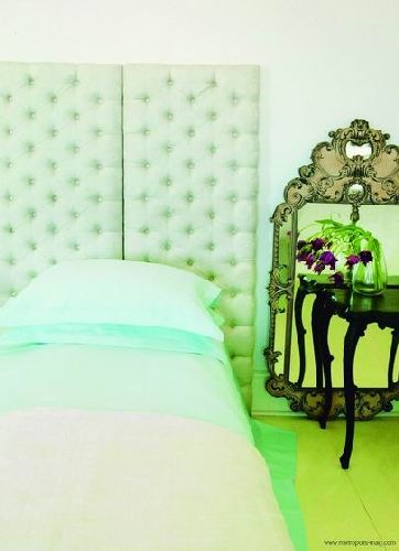 照片里的奢華床頭靠板,今年冬天非常流行。它不僅色彩、設(shè)計清爽,舒適你的視覺,純皮材質(zhì)和柔軟填充物更能幫你全身放松。白顏色與簡潔的外型非常容易搭配,也容易融入周圍空間,形成既對比又協(xié)調(diào)的層次美。
