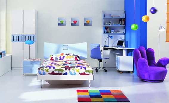 在設(shè)計兒童房時,應(yīng)避免單調(diào)的純白色調(diào),可以根據(jù)孩子的年齡、喜好、性別設(shè)計得個性化一些,增加趣味性。不同的色彩可以刺激兒童的視覺神經(jīng),開發(fā)兒童的學習能力。童房的色彩和孩子的性別有關(guān)。女孩子的房間可以選用淺粉色為主色調(diào),男孩子的房間可以是淺藍或淺綠為主,這可以幫助男孩“更像男孩”,或者女孩“更像女孩”。
