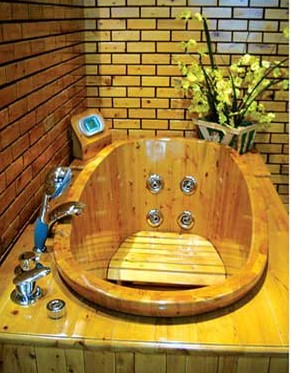 如果真的追求古人沐浴的感覺(jué),這款圓木桶應(yīng)該是最好的選擇,跟在電視上看到的模樣幾乎一樣,只是感覺(jué)用材更優(yōu)良,不必?fù)?dān)心發(fā)霉,而且還加了個(gè)小梯子,更顯人性化。要不這么高的木桶,還真該考慮要怎么走進(jìn)去。在木桶里灑上些花瓣,就和想象中的古人沐浴更加接近了;如果覺(jué)得那還不夠愜意,盡可以倒些牛奶、啤酒進(jìn)去,古今結(jié)合,定能洗出一身好皮膚。