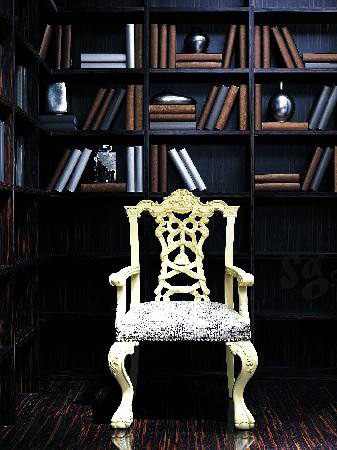 略顯沉重的黑色實木書柜與地板似乎連為一體,要想破解如此凝重的氛圍,必需使用與之強對比的家具和配飾。桌臺和座椅都選用白色古典雕花款式,適當?shù)蔫偨鹪黾臃€(wěn)重大氣的風范,在桌臺前加鋪厚絨羊毛地毯,看似漫不經心的座榻和靠墊都變身為對比的色彩。書房空間中,視覺的中心轉變?yōu)楣诺涞陌咨揖吆团滹?,更貼合人們的審美。