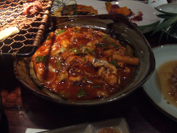 這里的環(huán)境不錯,服務也不錯,菜的口味也很正宗,要是去的業(yè)主要注意了,不要點很多哦,因為他們的配菜很多,而且很豐富,我們這次就點的太多了,因為前期我們怕不夠吃,但是他們的那個烤肉很不錯,自己腌制好的牛排肉吧,好像是,很不錯,很嫩,其他的我們還點了海鮮炒年糕,這個很棒,還有那個雞蛋羹也跟別人家的不一樣,最后我們還要了一個火鍋,我們很能吃的吧,但是最后還是剩下了,所以去的朋友一定記住了,不要點很多,其實2盤肉就可以了,在加上一點特色菜品嘗一下,很不錯。下面是照片,看看吧