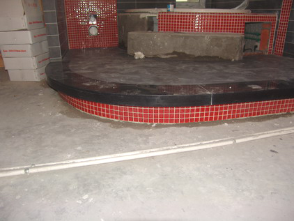 抬高的地面弧形地磚和大理石切割非常精確,下面邊緣的馬賽克處理師傅們也細(xì)心到位地做好。