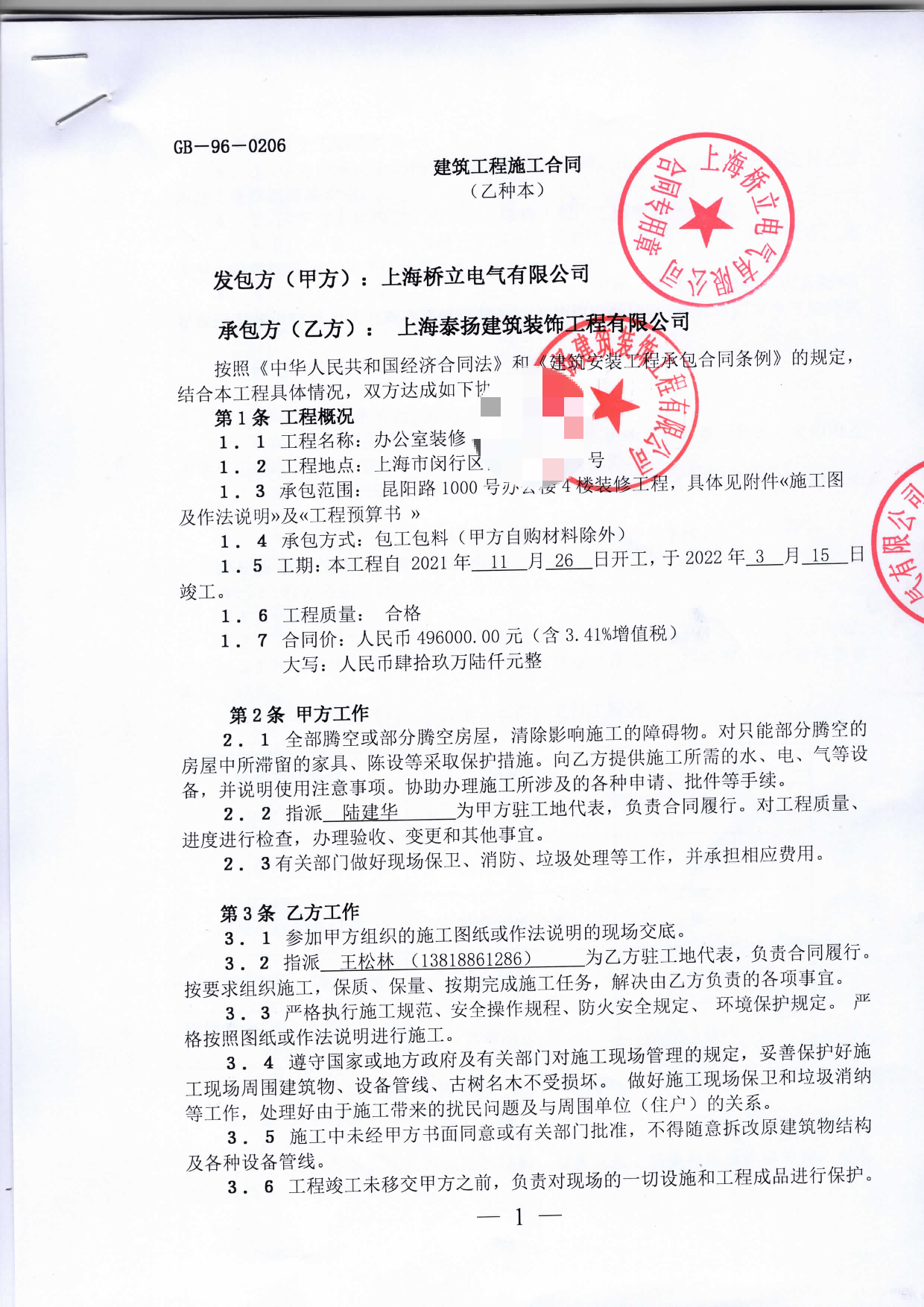 業(yè)主曹金臺的裝修工地已成功創(chuàng)建,施工方為上海泰揚建筑裝飾工程有限公司,請及時補充參與人員,并定時播報工地進展。如有疑問請撥打:400-118-8580