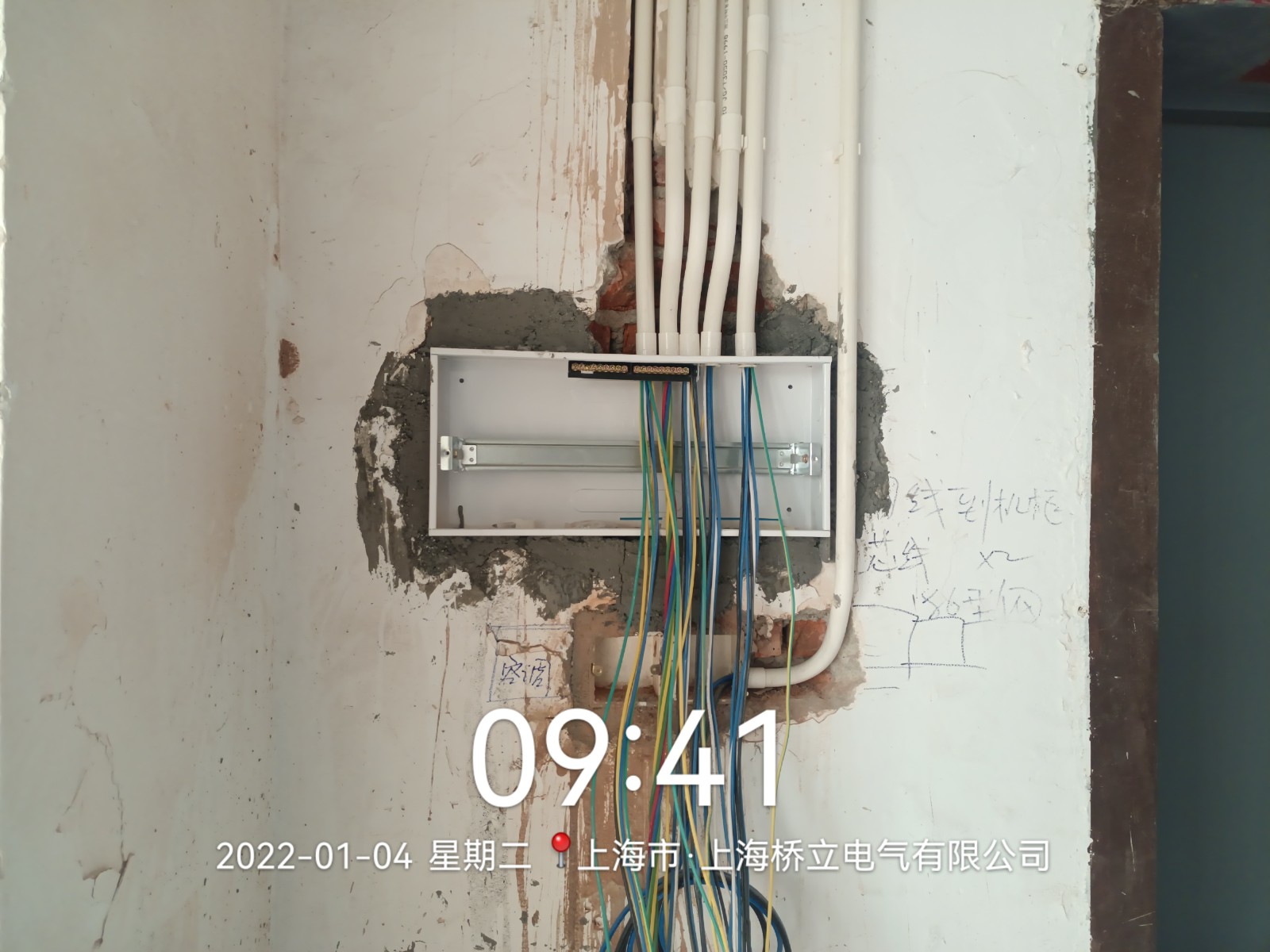 電工開槽,水平線已彈好。