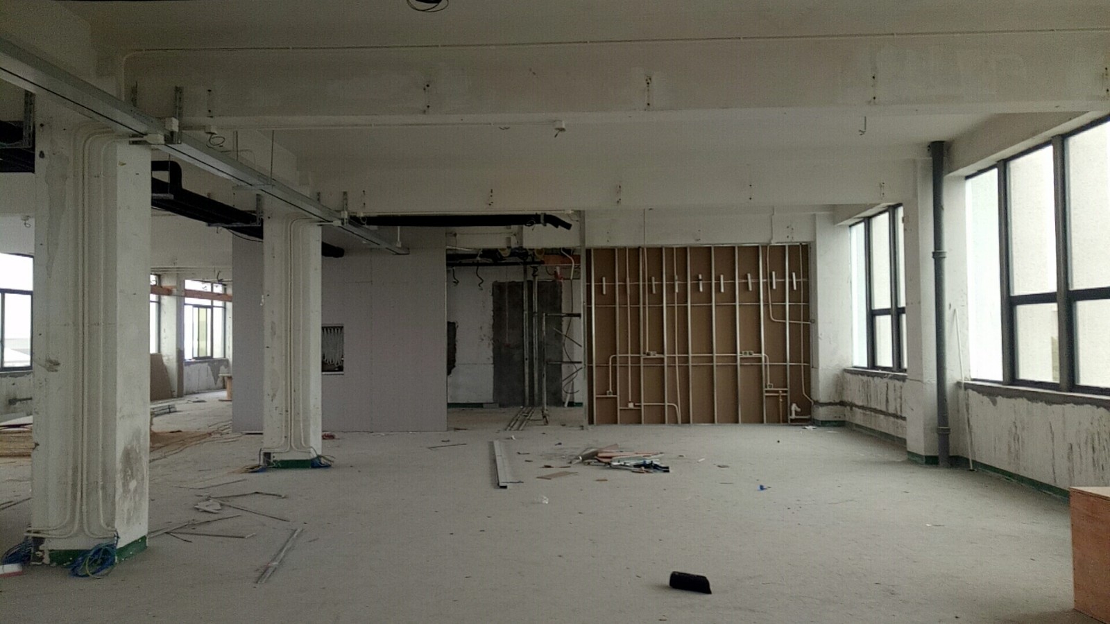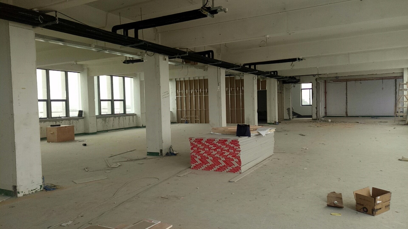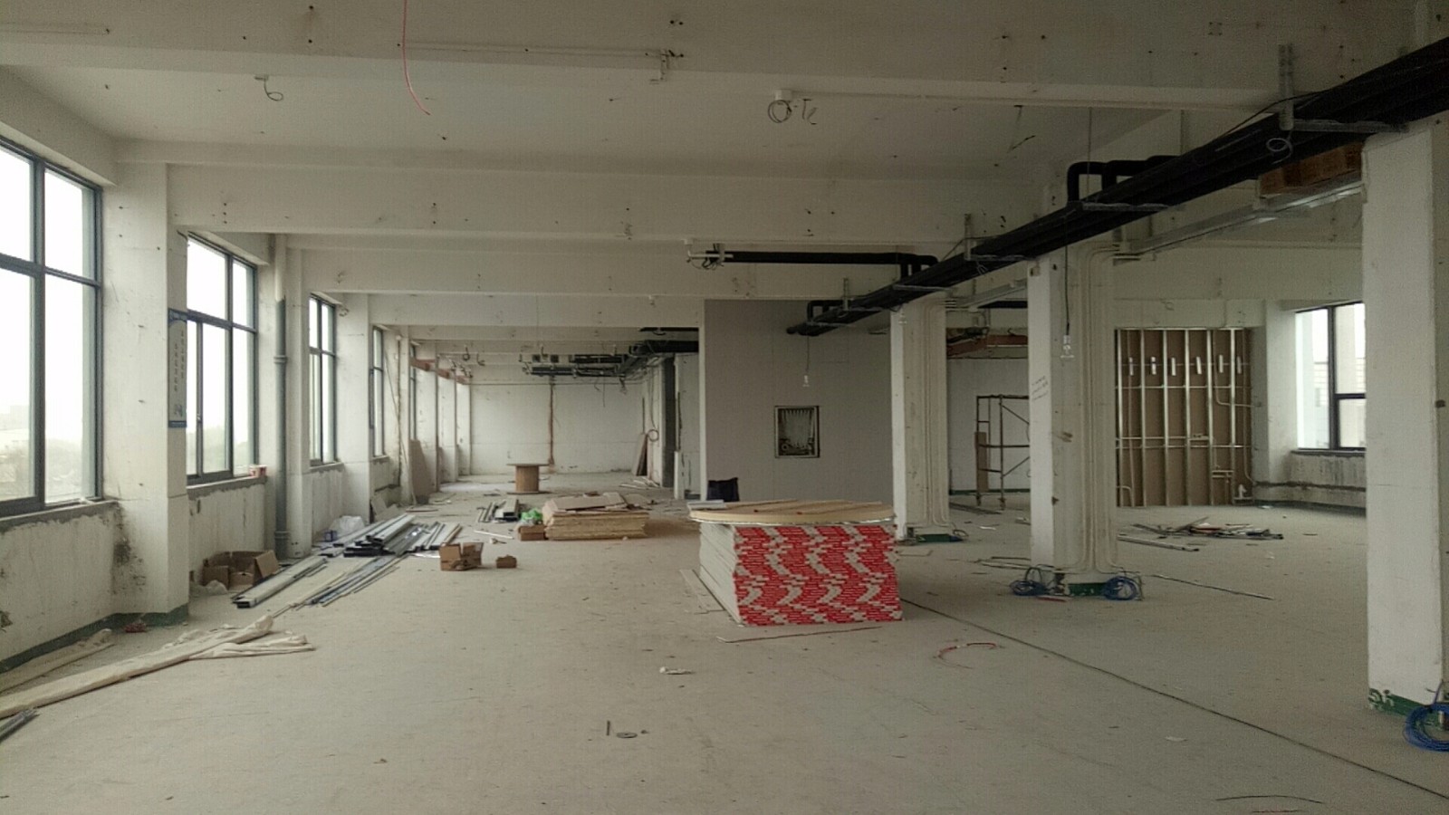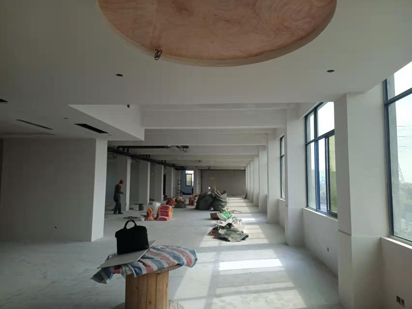 近期沒工人施工, 甲方在安裝空調。 等甲方空調管道弄好后再進行施工。 后期會跟進