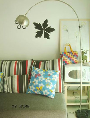 扮家心得:家是點滴積累的,平時多逛逛家居商場,多積累些小飾品比較好,一次性購買往往會時間太緊迫。 L型沙發(fā)加條紋抱枕共1500元,原價2800,樣品再砍價,1500就拿到了,當(dāng)時買得比較急沒有細選,覺得占面積太大了,但是大有大的好處,橫七豎八都可以躺。