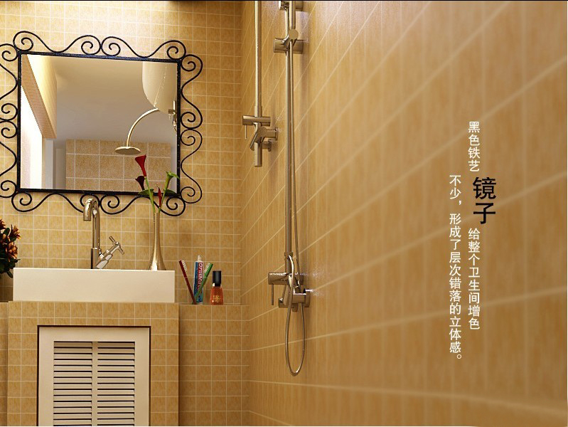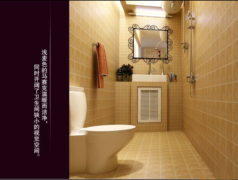 衛(wèi)生間里,墻面與地面采用同一色系的馬賽克,新穎時(shí)尚。