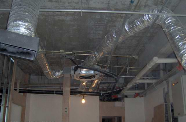 一般情況下,室內(nèi)機可吊置在衛(wèi)生間內(nèi)或走廊、房間交界處的過道等處,可做一個吊頂。根據(jù)戶型結(jié)構(gòu)、隨同的裝修和布置來決定風機盤管的安裝形式和位置。始終要使吊頂面積最小、最合理,又能使風機盤管安裝在吊頂內(nèi),不需因放置風機盤管而做不必要的裝修。