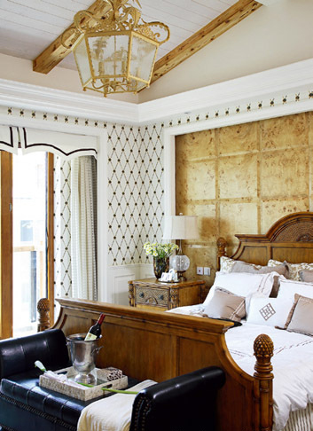 臥室的背景墻延用大氣的金銀灰色,依然是實木的家具,標(biāo)準(zhǔn)的美式風(fēng)格